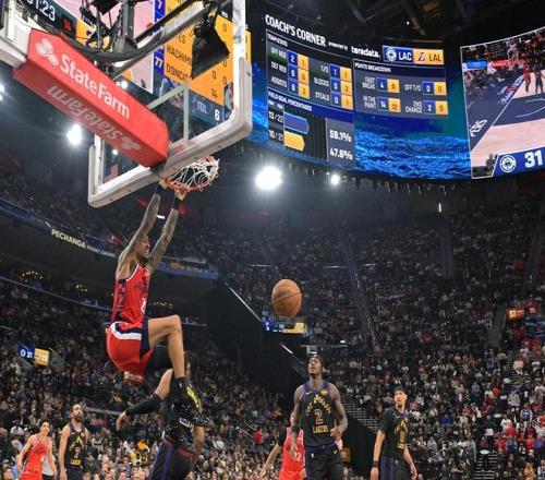 第二节双方轮换阵容阶段,小卡回来带队,他进攻状态依旧火热,中投连续命中,湖人这边则是老詹连投带罚苦苦支撑。大洛外线三分还有,东契奇传球出界失误进入暂停。但这个暂停以后,湖人进攻全面崩盘,哈登回来得分、助攻一把抓,快船的防守和篮板球保护非常好,一波流拉开分差。半场结束快船64-47领先17分。